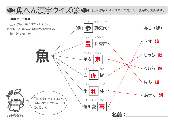 高齢者の漢字クイズ 難易度を選べる魚へん漢字クイズ ハートページナビ